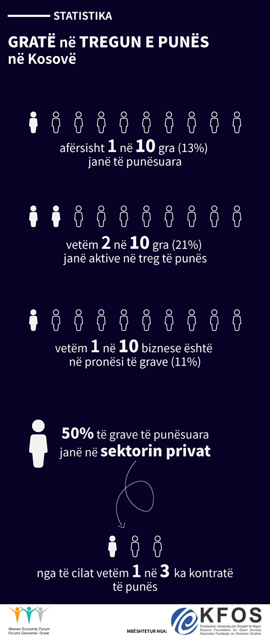 Me normë tejet të ulët të punësimit të grave (13%), joaktivitet enorm në treg të punës (79%), me një në tri gra të punësuara në sektor privat pa kontratë pune, si dhe me vetëm 11% të bizneseve të grave, mosadresimi i sfidave të grave në fuqinë punëtore tashmë të goditur nga pandemia, mund të shkaktojë dëme të mëdha e vështirë të riparueshme.